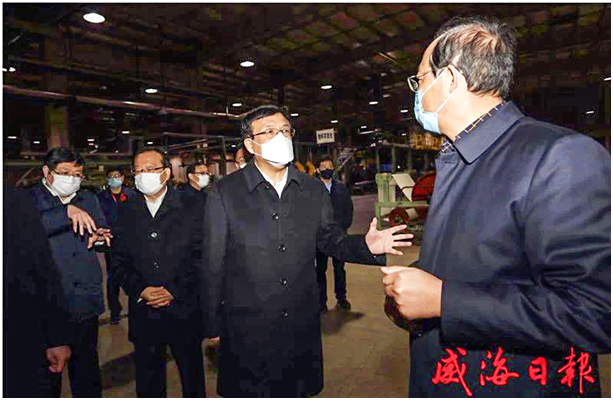 2020年2月19日,威海市市委書記、市委新型冠狀病毒肺炎疫情處置工作領(lǐng)導(dǎo)小組組長王魯明來我公司考察,調(diào)研企業(yè)復(fù)產(chǎn)復(fù)工情況。王魯明在公司董事長李忠濤的陪同下走進(jìn)廠區(qū)、車間,實地了解企業(yè)產(chǎn)品研發(fā)、生產(chǎn)工藝、市場銷售等方面的情況,對工廠一邊做好疫情防控一邊快速復(fù)工復(fù)產(chǎn)的做法給予肯定。同時表示,疫情終將過去,發(fā)展不能停步。危機(jī)的背后往往伴隨著機(jī)遇,越是困難的時候,越是企業(yè)有所作為的最佳時機(jī)。企業(yè)要把疫情帶來的壓力變?yōu)榘l(fā)展的動力,迎難而上,加快技術(shù)創(chuàng)新和轉(zhuǎn)型升級,增強(qiáng)企業(yè)的核心競爭力。要求企業(yè)復(fù)產(chǎn)復(fù)工過程中遇到困難和問題,及時報告,政府全力支持解決。